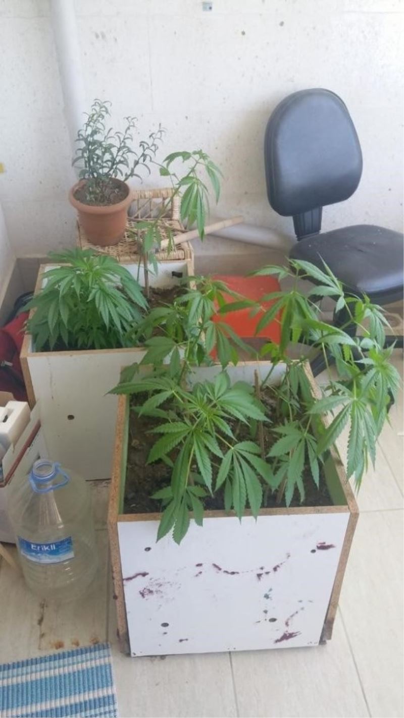 Ürgüp İlçe Emniyet Müdürlüğü ekipleri tarafından yapılan çalışmalar sonrada bir evin balkonunda saksılara ekilmiş Hint keneviri ele geçirildi.