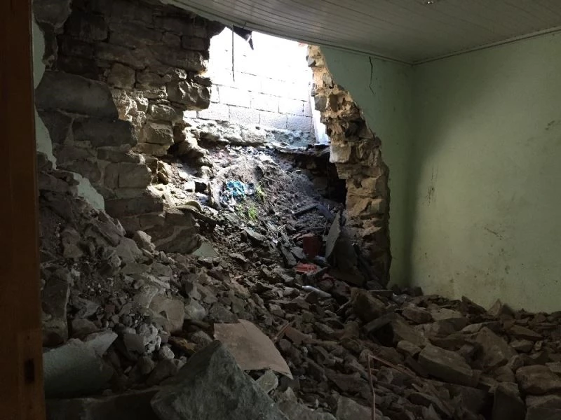 Son olarak başka bir duvarda da çalışmaya devam eden kimliği belirsiz kişi ya da kişiler, plansızca kırdıkları bir duvarın tamamen yıkılmasına sebep oldu. Yıkılan duvarın arkasında kalan bahçenin toprakları ise evin içine doldu.