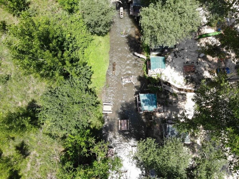 Uşak’ta kanyonuyla ünlü Ulubey ilçesine bağlı Dereboyu Çayı, sıcaktan ve kalabalıktan bunalan vatandaşlar için, açık havası, serinliği ve yeşil ağaçlarla kaplı doğası ile huzur bulmak isteyen vatandaşları bekliyor. Korona virüs tedbirleri kapsamında faaliyet gösteren Dereboyu Çayında sakin ve açık ortam olması nedeniyle turistlerin de dikkatini çekti. Doğaseverlerin huzur bulduğu, yetişkinlerin çayda kurulan banklarda oturması ve çocuklarında parkta ve çayda bulunan salıncaklarla zaman geçiriyor.