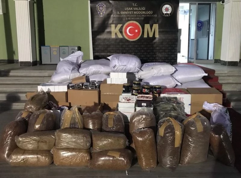 Uşak İl Emniyet Müdürlüğüne bağlı Kaçakçılık ve Organize Suçlarla Mücadele Şube Müdürlüğü ekipleri, istihbaratlar doğrultusunda kent merkezinde bir araç durdurdu. Araç içerisinde yapılan arama çalışmalarından araçta 387 şişe çeşitli markalarda kaçak alkol ele geçirdi. Ayrıca bir depoda yapılan arama çalışmalarında da 820 kg kaçak tütün, 138 bin bandrolsüz makaron ve 74 kg kaçak nargile tütünü ele geçirildi. Operasyon kapsamında 3 şahıs ekiplerce gözaltına alınırken, ifadelerinin alınmasının ardından serbest bırakıldı.