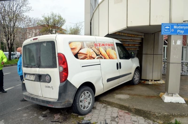 Sabah saatlerinde ekmek dağıtımı için Güzelyalı’dan Mudanya istikametine hareket eden M.A. idaresindeki 16 ACA 85 plakalı araç, Demirhane mevkii üst geçit lambalarında kırmızıya yakalanmamak için süratle geçti. Bursa İstikametine gitmekte olan E.G. idaresindeki 16 V 5259 plakalı hafif ticarî araç, Mudanya istikametine hatalı dönüş yapan araca çarptı. 85 plakalı araç savrularak üst geçidin ayağının altına girdi. Açılan hava yastığı sürücünün yaralanmasına sebep oldu. Olay yerine gelen itfaiye ve 112 ekipleri yaralı M.A’yı araçtan çıkararak Mudanya Devlet hastanesine götürdü. Burada müşahede altına alınan M.A’nın hayatî tehlikesinin bulunmadığı öğrenildi. Diğer sürücü E.G. ise kazayı hafif sıyrıklarla atlattı.