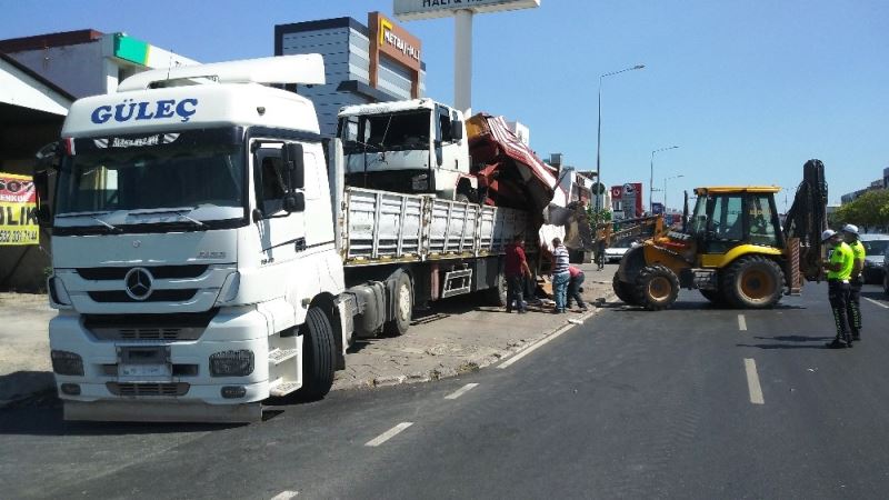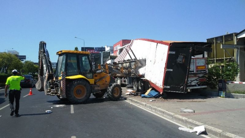İzmir’in Gaziemir ilçesinde dorsesinde arızalı kamyon bulunan tır, üst geçide takıldı. Ölü ve yaralının olmadığı kaza nedeniyle trafik uzun süre aksadı.