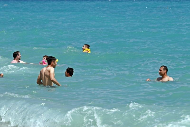 Uyarılar işe yaradı, denizde bile sosyal mesafeli yüzdüler