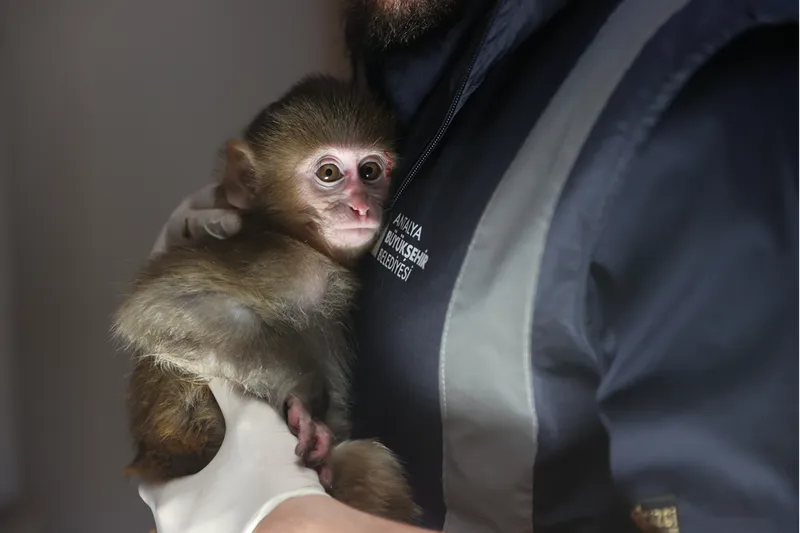Kentte polis ekiplerince uyuşturucu operasyonu düzenlenen evde bulunarak el konulan 4 aylık erkek rhesus cinsi maymun yavrusu, Antalya Doğal Yaşam Parkı'na teslim edildi.