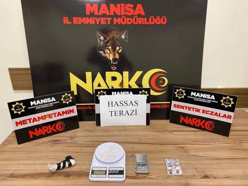 Manisa İl Emniyet Müdürlüğü Narkotik Suçlarla Mücadele Şube Müdürlüğü görevlilerince uyuşturucu veya uyarıcı madde ticareti yapan, nakleden ve kullanan şahıslara yönelik yapılan çalışmalarda Şehzadeler ilçesinde durdurulan şahısların üzerinde yapılan aramada, 36,72 gram esrar maddesi, 21 adet sentetik ecza hapı, 0,46 gram metamfetamin maddesi ele geçirilerek 5 şüpheli şahıs hakkında adli işlem yapıldı. Konuyla ilgili şahısların uyuşturucu maddeyi satın aldıkları tespit edilen şahısların araçlarında ve ikametlerinde yapılan aramada ise, 53,59 gram metamfetamin maddesi, 2 adet sentetik ecza hapı, 2 adet hassas terazi ele geçirildi. 3 şüpheli şahıs uyuşturucu veya uyarıcı madde imal ve ticareti yapmak suçundan gözaltına alınarak sevk edildikleri adli makamlarca B.U. (46) ve M.D. (52) isimli 2 şüpheli şahıs tutuklandı.