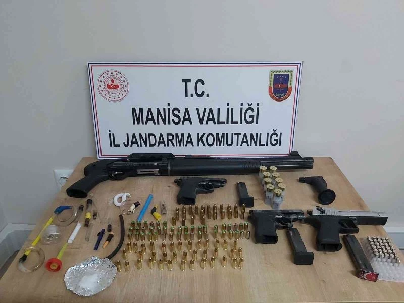 Manisa’nın Alaşehir ilçesi Tepeköy Mahallesinde bugün saat: 17.00 sıralarında Manisa İl Jandarma Komutanlığı İstihbarat ve KOM Şube Müdürlüğü ile Alaşehir İlçe Jandarma Komutanlığına bağlı JASAT ve Merkez Jandarma Komutanlıklarınca yürütülen müşterek çalışmalar sonucunda uyuşturucu madde ticareti, kaçak silah ve mühimmat olduğu bilgisine ulaşıldı. Ortak yapılan operasyonla Y.K (37), Ü.A. (46), A.K. (50) İ.T (30) ve E.U. (33) isimli şüphelilerin evlerinde ve eklentilerinde yapılan aramada; 5 gram metamfetamin, 7 adet uyuşturucu madde içme aparatı, 1 adet Ruhsatsız Av Tüfeği, 49 adet av tüfeği fişeği, 59 adet 9 mm tabanca fişeği, 34 adet 7.65 mm tabanca fişeği, 3 adet kurusıkı tabanca, 42 adet kurusıkı tabanca fişeği ele geçirildi. Olayla ilgili olarak şüpheli şahıslar ifadelerinin alınmasının ardından serbest bırakıldı.