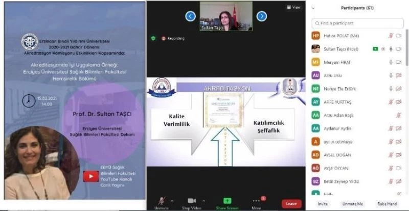 Erzincan Binali Yıldırım Üniversitesinde (EBYÜ) “Akreditasyonda İyi Uygulama Örneği: Erciyes Üniversitesi Sağlık Bilimleri Fakültesi Hemşirelik Bölümü” konulu webinar düzenlendi.