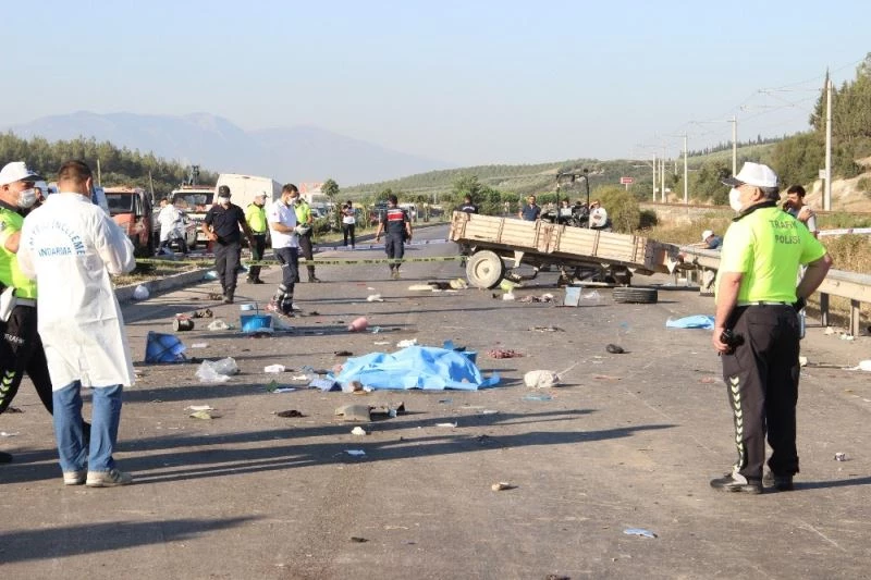 Manisa’nın Saruhanlı ilçesinde üzüm işçilerini taşıyan traktör ile kapalı kasa panelvanın çarpışması sonucu meydana gelen kazada 3 kişi öldü, 10 kişi de yaralandı. Çarpışmanın etkisiyle açık kasa traktör römorkunda bulunan üzüm işçileri asfalt yola savrulurken, ortalık adeta savaş alanına döndü.
