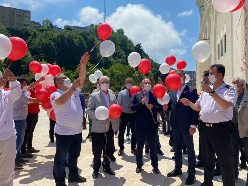 Türk Kızılayın 153’ün yıl dönümü kapsamında Uzunmehmet camisi önünde protokol üyeleri kırmızı beyaz balon uçurdu.