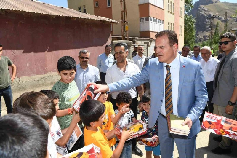 Hakkari Valisi ve Belediye Başkan Vekili İdris Akbıyık, karşılaştığı her çocuğa kitap hediye ederek okumaya teşvik etmeye devam ediyor.