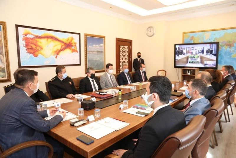 İçişleri Bakanı Süleyman Soylu ve Aile, Çalışma ve Sosyal Hizmetler Bakanı Zehra Zümrüt Selçuk’un video konferans yöntemiyle katıldığı toplantıda, kadına yönelik şiddetle mücadele kapsamında uygulanan tedbirler ile kurumların yürüttüğü çalışmalar değerlendirildi.