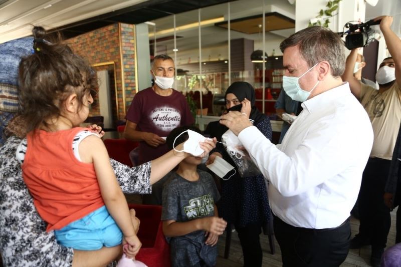 Aksaray’da korona virüse (Covid-19) karşı alınması gereken önlem ve tedbirlere yönelik farkındalık oluşturmak için her daim vatandaşlarla bir araya gelen Aksaray Valisi Hamza Aydoğdu, önlem ve tedbir uygulamasında maske takan küçük kız çocuğunu ve ailesini tebrik etti.
