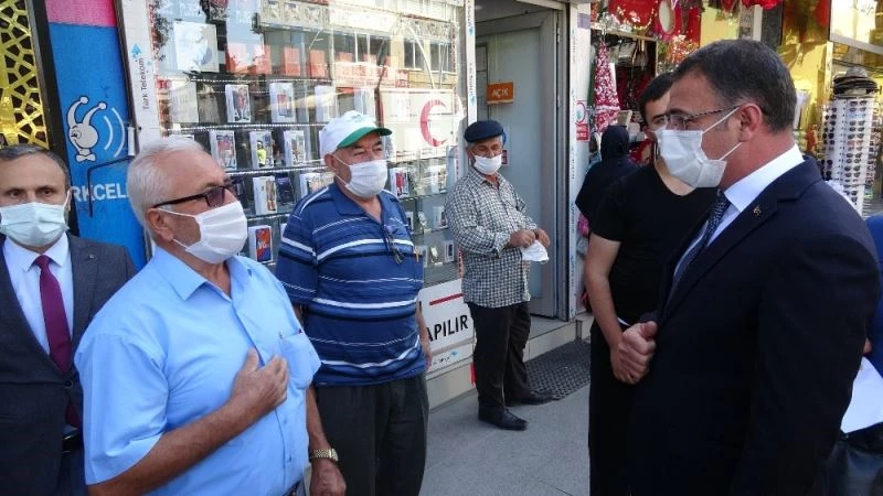 Tokat Gaziosmanpaşa Bulvarında korona virüs denetimi Vali Ozan Balcı’nın öncülüğünde yapıldı. Vali Balcı, vatandaşlara esnafları maske, mesafe ve hijyen konusunda uyardı. Kentte denetimlerin aralıksız olarak devam ettiğini belirten Vali Balcı, Tokatlıların bu mücadeleye destek verdiğini gözlemlediklerini söyledi. Vali Balcı, ”Sağlık ordumuz, doktorlarımız, ebelerimiz, hemşirelerimiz ve onlara yardımcı olan idari ve teknik personelle beraber bir büyük mücadele veriyor. Bütün devlet teşkilatı olarak, kurumları olarak, Tokatlı hemşehrilerimiz olarak biz de omuz omuza, el ele bu mücadeleye destek veriyoruz. İnşallah gevşetmeden, yılmadan, pes etmeden bu pandeminin üstesinden geleceğiz. Paniğe kapılmaya gerek yok; ama sorumluluk duygusundan da asla vazgeçmememiz lazım” diye konuştu.