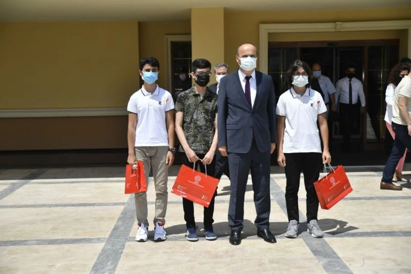 Vali Canalp ödül töreninde yaptığı konuşmada, “Bugün burada üç kardeşimize ve onları yetiştiren öğretmenlerimize hediye vermek için bir araya geldik. Ama hediye verirken sadece tam puan alarak kendi başarılarını kanıtlayan bu arkadaşlarımızı değil, salgın sürecinde sınavlara hazırlanan ve gerek kendi imkânlarıyla gerekse öğretmenlerinin desteği ile başarı sağlayan tüm öğrencilerimizi ve tüm öğretmenlerimizi kutlamak istiyorum. Aynı şekilde de üç kardeşimizin çabasına destek olan öğretmenlere verdiğimiz ödülü de sembolik olarak tüm öğrencilerimize destek olan diğer öğretmenlerimiz için de vermiş olmak istiyorum” dedi.