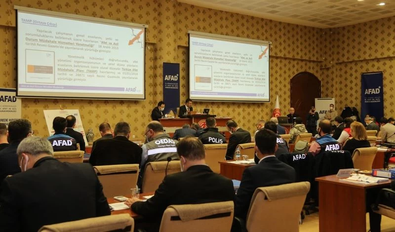 Deprem sonrası müdahale sürecinde kurumlar arası iş birliği, uyum ve koordinasyon vurgusu yapan Vali Çelik, “Tüm kamu kurumları Türkiye Afet Müdahale Planı’nda görevli. Bu konuda herkes sorumluluklarının farkında varmalı, çalışma gruplarındaki herkes bu farkındalığı sağlamalı” dedi.