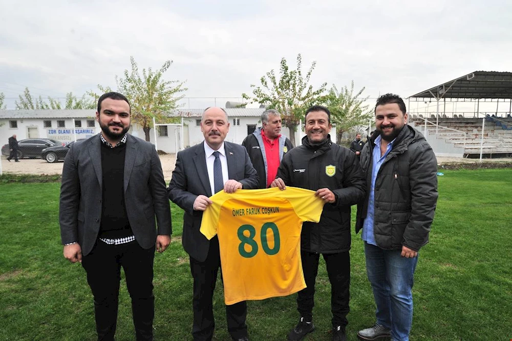 Osmaniye Valisi Ömer Faruk Coşkun, Osmaniyespor Futbol Kulübü takımının oyuncularını antrenman sahasında ziyaret etti. Futbolcularla bir süre sohbet eden Vali Coşkun, "Futbolcularımızı, teknik heyetimizi ve kulüp yöneticilerimizi ziyaret ederek başarı dileklerimi kendilerine iletmek istedim. Son iki haftada takımımız galip geldi. Temennimiz bu galibiyet serisinin bu hafta da devam ettirilmesi ve sezon sonunda da Osmaniyespor`un şampiyon olması. Futbolda takımların zaman zaman inişleri ve çıkışları olabilir bunu olağan karşılamak gerekir. Önemli olan futbolcularımız, teknik heyetimiz ve yönetimimiz ile taraftarımızın kenetlenmesi birlik ve beraberlik içerisinde hareket edebilmesidir. Kulüp Başkanımız Mustafa Baştuğ Bey takımımızın başarısı için her türlü desteği veriyor. Kendisine teşekkür ediyorum. Birlik beraberlik ruhu içerisinde hareket etmek suretiyle takımımızın başarıya ulaşacağına olan inancım tamdır. Takımımıza önümüzdeki maçta ve sonraki bütün maçlarda başarılar diliyorum." dedi. Takımın Teknik Direktörü Recep Aydemir, Vali Coşkun?a takımın tüm oyuncuları adına teşekkür ederek, ?Sayın Valimizin ziyareti bize güç verdi, kendisine teşekkür ediyoruz? diye konuştu. Ziyaret sırasında Vali Ömer Faruk Coşkun?a üzerinde isminin yazılı olduğu 80 numaralı forma hediye edildi. Antrenmanı izleyen Vali Coşkun, ziyaretinin sonunda futbolcularla hatıra fotoğrafı çektirdi.