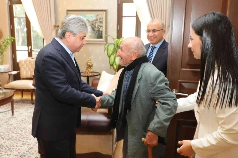 Hatay Valisi Rahmi Doğan, 98 yaşındaki Mehmet Şükrü Vural’ı makamında ağırlarken, "Her zaman büyüklerimizin yanında olmaya devam edeceğiz" dedi.