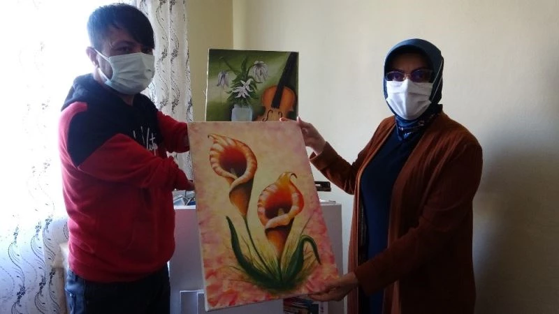 Vali eşinden elleri olmayan ve resim çizen şehit çocuğuna anlamlı ziyaret