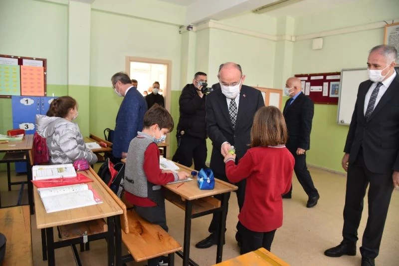 Manisa Valisi Yaşar Karadeniz, kontrollü normalleşme döneminin sürdürülebilmesi amacıyla hayata geçirilen Tematik Denetim Planı kapsamında, 23 Nisan İlkokulunda incelemelerde bulundu.