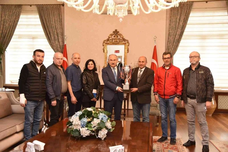 Türkiye İşitme Engelliler Futbol 1. Ligi grup finallerinde şampiyon olarak kupayı kente getiren Manisa Sağır Spor Derneği, Vali Yaşar Karadeniz’i ziyaret etti.