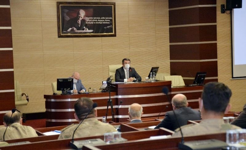 Erzurum Valisi Okay Memiş başkanlığında pandemi ile mücadele, asayiş ve diğer konuların konuşulduğu bir toplantı düzenlendi.