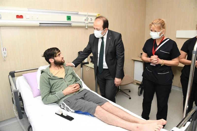 Hastane çıkışında bahçedeki hasta yakınları ile de bir araya gelen Vali Pehlivan, geçmiş olsun dileklerini iletti.