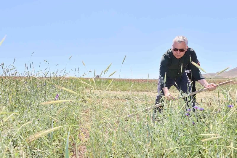 Konuşmaların ardından Vali Şimşek, traktöre binerek hasat gerçekleştirdi.