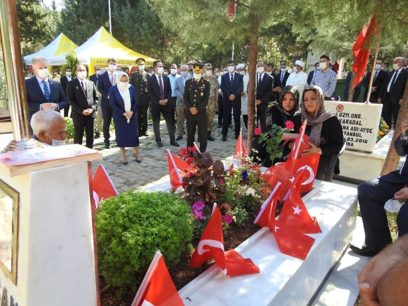 Etkinlikler kapsamında Asri Mezarlıkta bulunan şehitlikte bir araya gelen Vali Davut Gül, Garnizon Komutanı Tuğgeneral Hacı Ali Osman, Büyükşehir Belediye Başkanı Fatma Şahin, Şahinbey Belediye Başkanı Mehmet Tahmazoğlu ve Şehitkamil Belediye Başkanı Rıdvan Fadıloğlu ile şehit aileleri, okunan Kur’an-ı Kerim ve duanın ardından şehit mezarlarına karanfiller bıraktı.