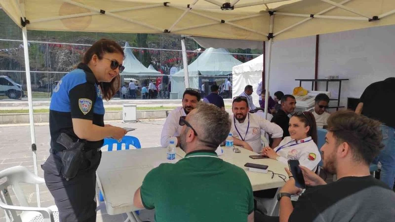 Toplum Destekli Polislik Şube Müdürlüğü görevlileri, İpekyolu ilçesi Yalı Mahallesi’ndeki Van Müzesi önünde startı verilen 1. Van Gastronomi Festivali’ne katılan vatandaşlarla bir araya gelerek; KADES, dolandırıcılık, iletişim yoluyla dolandırıcılık ve hırsızlık konularında bilgilendirerek el broşürü dağıtıltı.