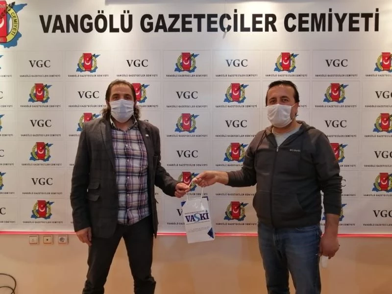Vangölü Gazeteciler Cemiyeti (VGC), korona virüs nedeniyle sürekli alanda çalışmak zorunda olan gazetecilere Van Su ve Kanalizasyon İdaresi Genel Müdürlüğünün (VASKİ) desteğiyle hijyen paketi dağıttı.