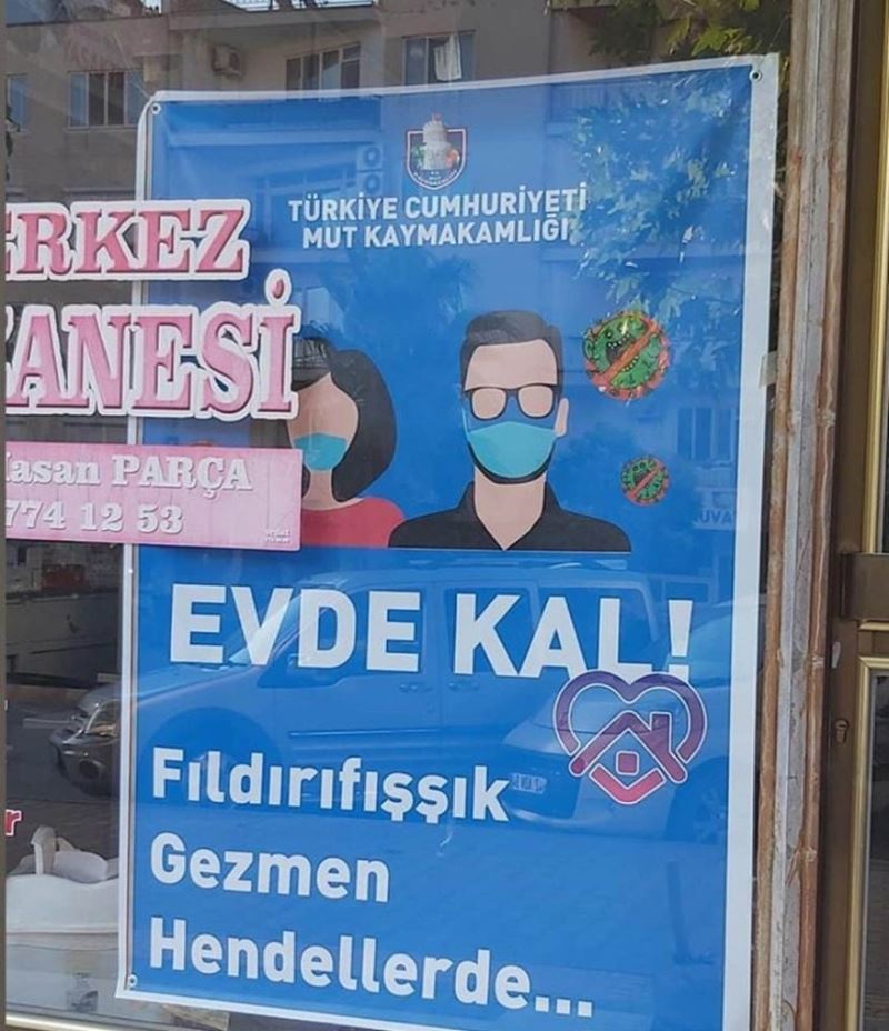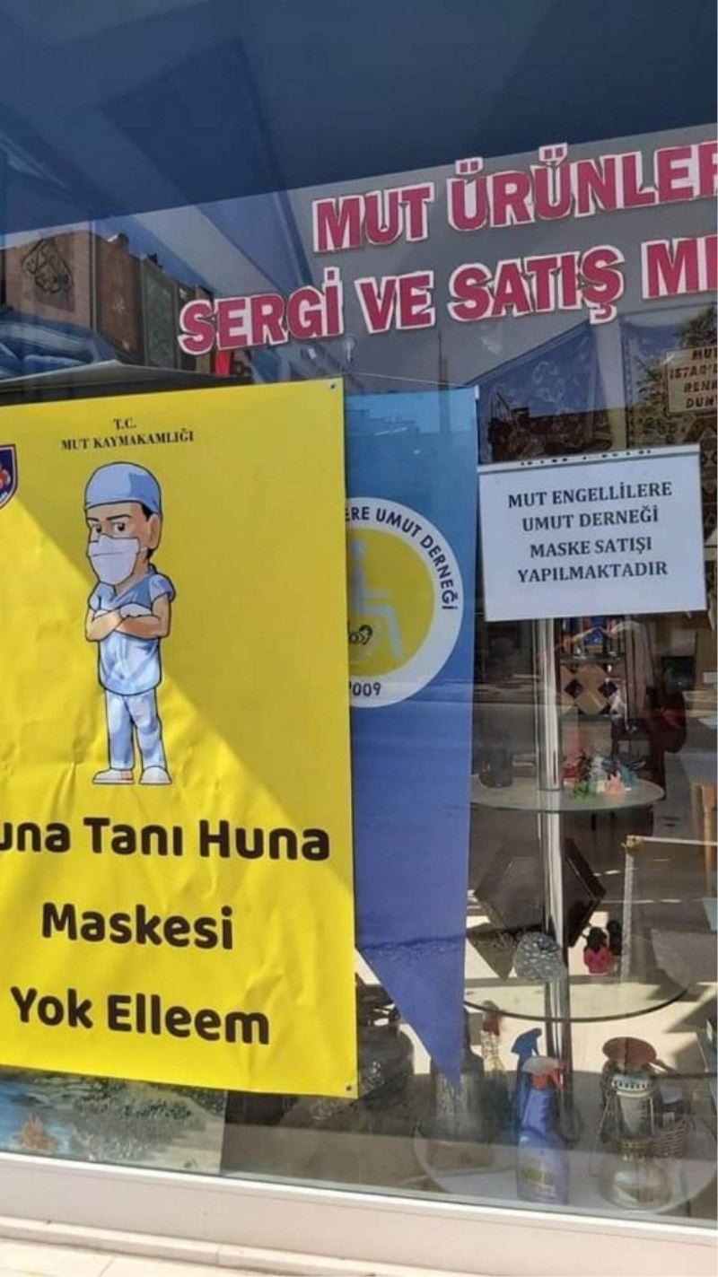 Mersin’in Mut ilçesinde, vatandaşlar korona virüse karşı maske takmaları ve sosyal mesafe kuralına uymaları konusunda, yerel şiveli afiş ve broşürlerle uyarıldı.
