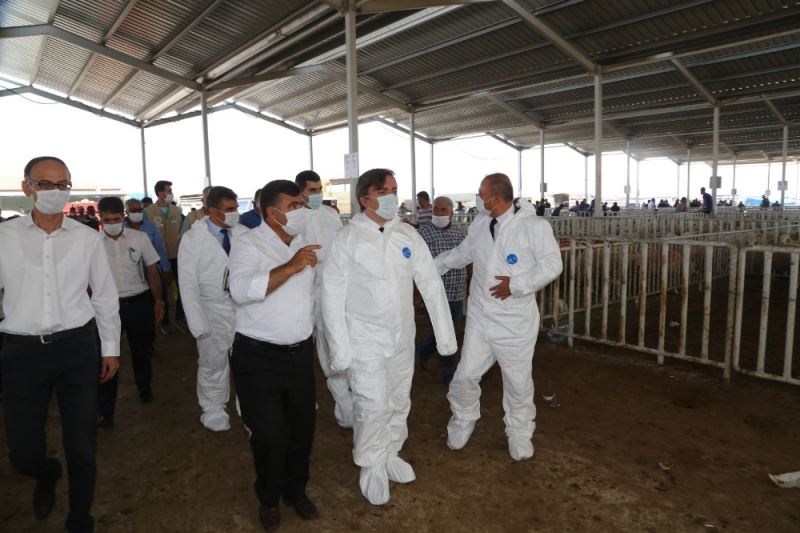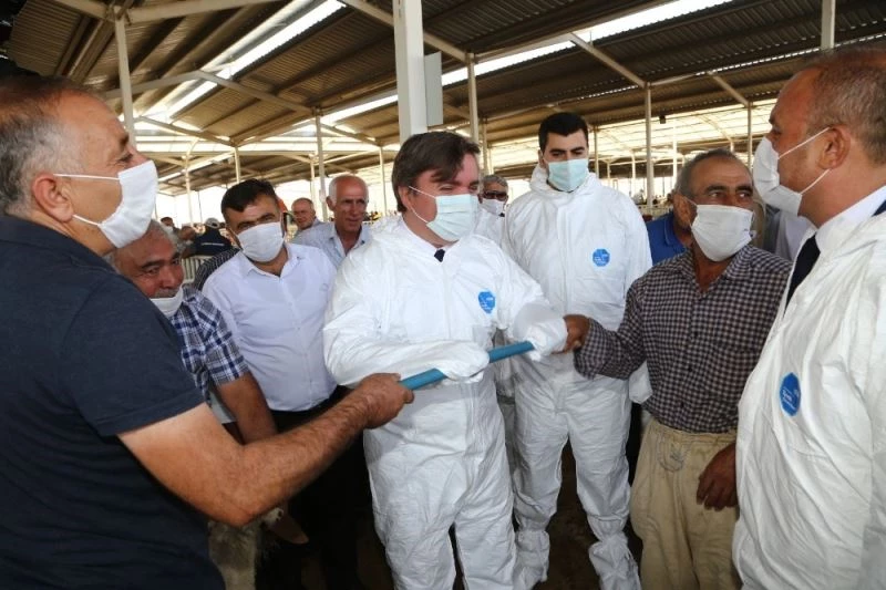 Aksaray’da canlı hayvan pazarını denetlemeye giden Vali Hamza Aydoğdu, alıcı ve satıcı arasında pazarlık yaparak kurbanlıkları sattı.