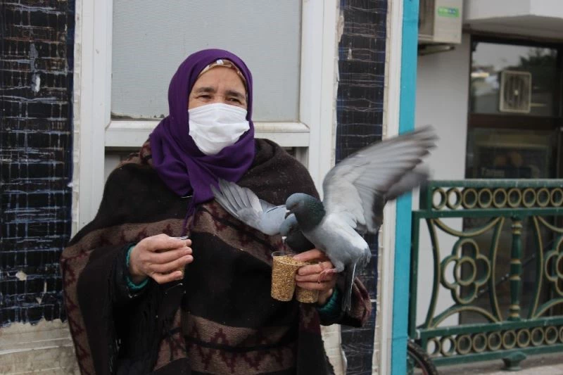 Vatandaşların beslediği güvercinlerin renkli görüntüsü