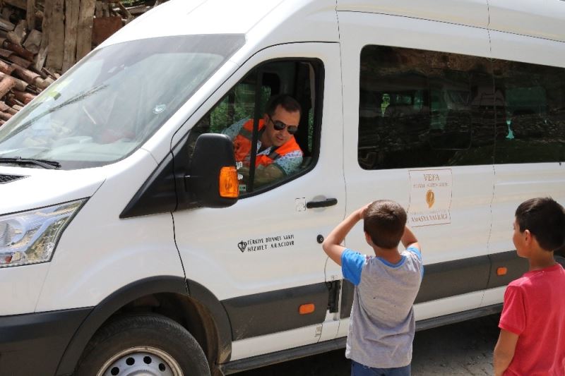 Amasya’nın Suluova ilçesi Soku köyünde ikamet eden çocuklar köylerinden geçen vefa grubu aracının önünü keserek ayakları kırık köpekleri için yardım istedi.