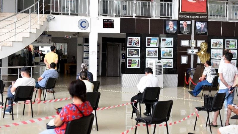 Muratpaşa Belediyesi, vergi tahsilat dönemi dolayısıyla hizmet binasında yeni bir düzenlemeye gitti. Ödemelerin yapıldığı vezneler sabah ve öğleden sonra açılış saatleri öncesi dezenfekte edilirken mükelleflerin sosyal mesafe kuralları içinde beklemeleri için fuayeye aralıklarla sandalyeler yerleştirildi.