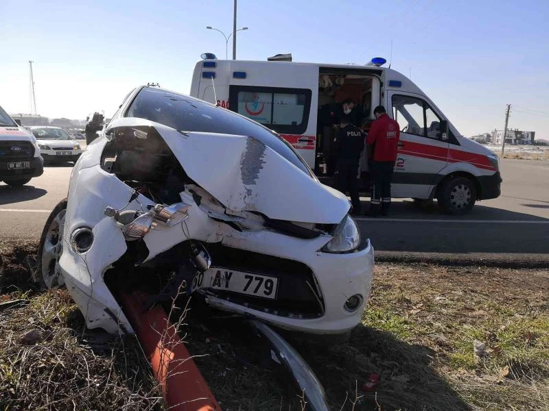 Aksaray’da döner kavşakta virajı alamayan sürücü önce reklam tabelası direğine çarptı, sonra da bahçe tellerine çarptı. Kazada sürücü anne ve oğlu yaralandı.