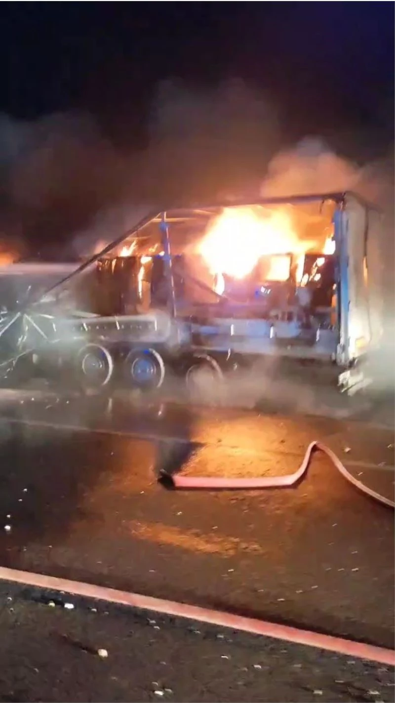 Virajı alamayan tır elektrik direğine çarpıp patlayarak alev aldı