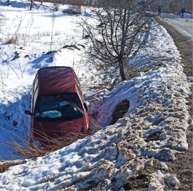 Virajı alamayarak şarampole giren otomobil sürücüsü yaralandı