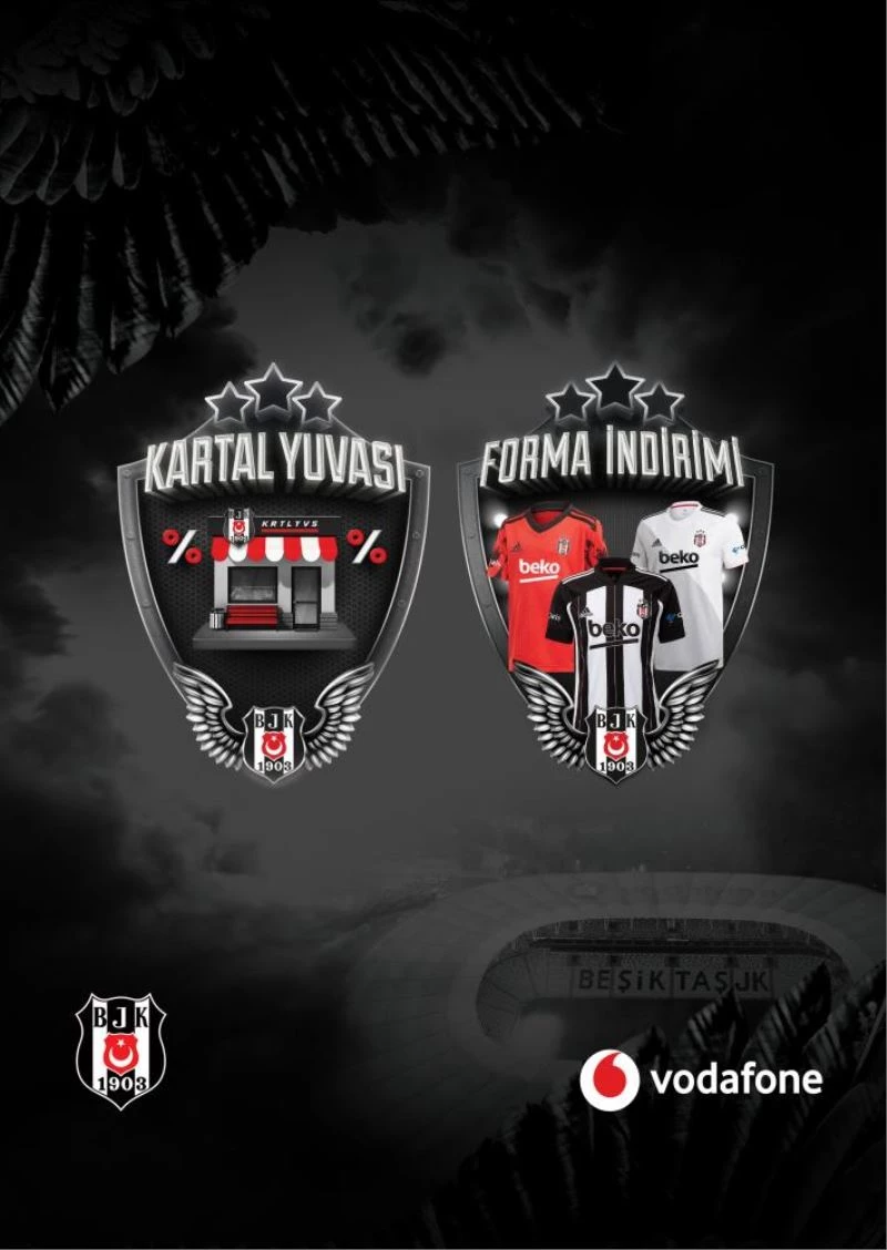 Vodafone KaraKartal üyelerine salı ve cuma günleri Kartal Yuvası mağazaları ve www.kartalyuvasi.com.tr'den 2020-2021 sezonu Adidas Beşiktaş forma alışverişlerinde yüzde 20 indirim sunulacak.