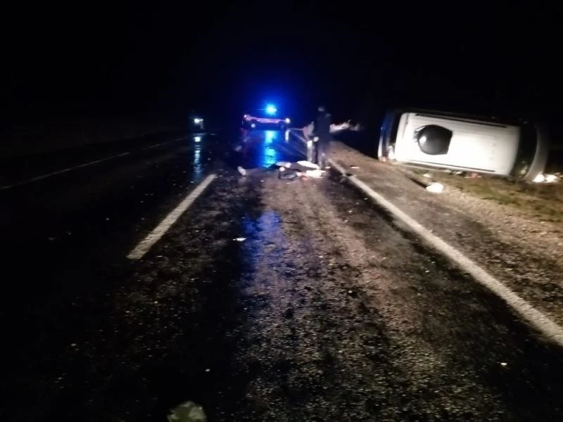 Yaban domuzuna çarpan otomobil devrildi: 1 ölü, 2 yaralı