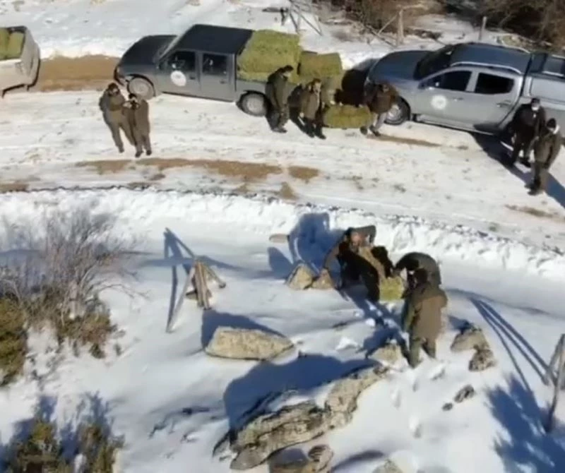 Yaban hayvanları için yapılan yemleme çalışması drone ile görüntülendi