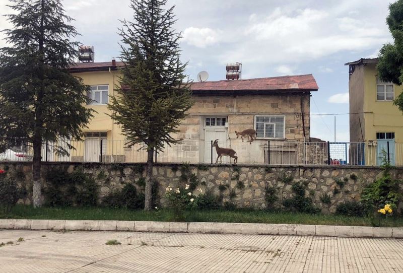 Tunceli’nin Çemişgezek ilçesinde son günlerde sıklıkla görülen yaban keçileri, bu kez aralarında hükümet konağının da olduğu kurumların bahçesine kadar gelmesi dikkat çekti.