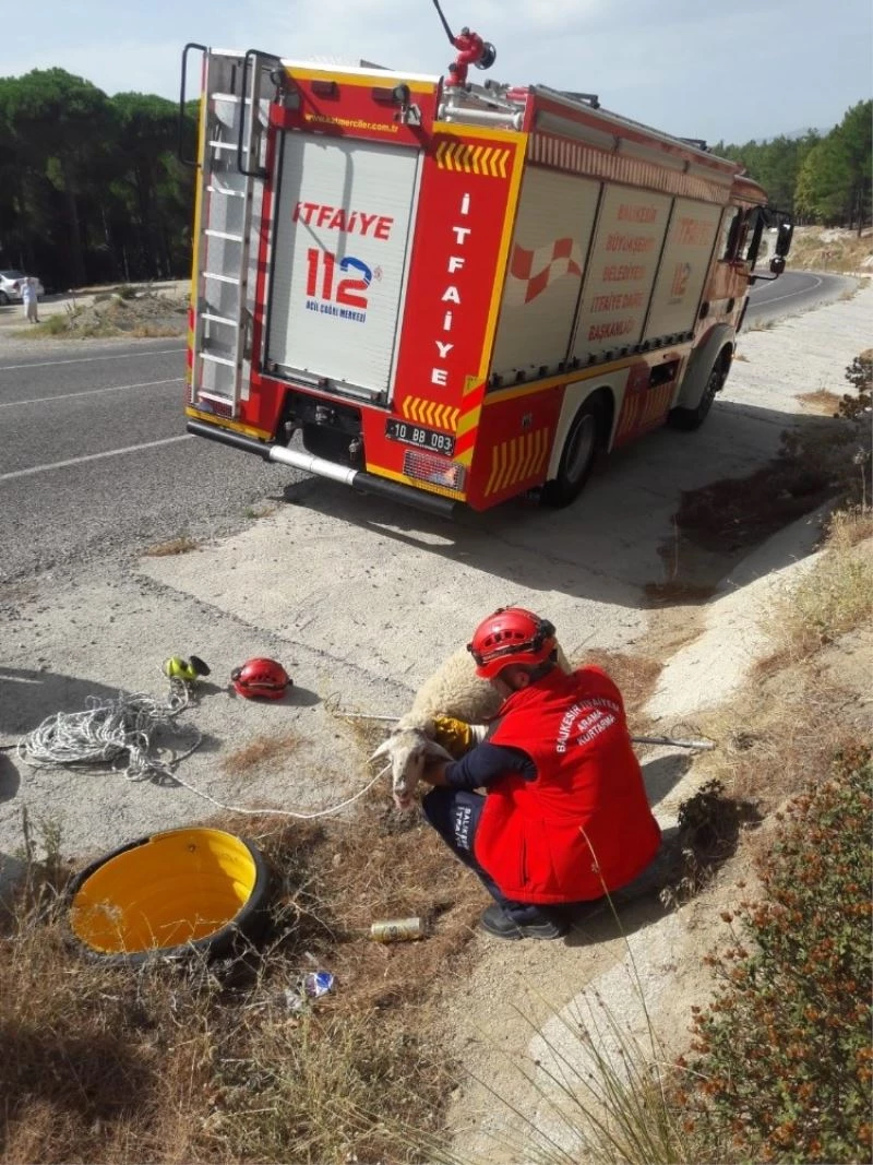 Balıkesir’in Edremit ilçesinde Edremit-Yenice Karayolunda yağmur giderine düşen koyun Balıkesir Büyükşehir Belediyesi İtfaiyesi tarafından kurtarıldı.