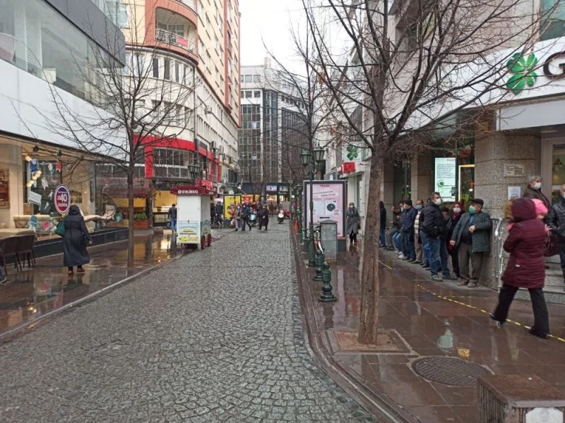 Kentte öğle saatlerinde başlayan ve etkili olan yağmur nedeniyle kısa sürede sokaklar boş kaldı. Şemsiyesi olmayan ve ıslanmak istemeyen vatandaşlar binalara, boş buldukları balkon ve saçakların altına sığındı. Bu sırada bir banka şubesi önünde içeri girebilmek için sosyal mesafeye uyarak aralıklarla bekleyen bir grup vatandaş, telaş içinde boş buldukları saçak altına sığınmak zorunda kaldı. Sosyal mesafeyi unutan vatandaşlar, yağmur süresince iç içe beklemek zorunda kaldı.