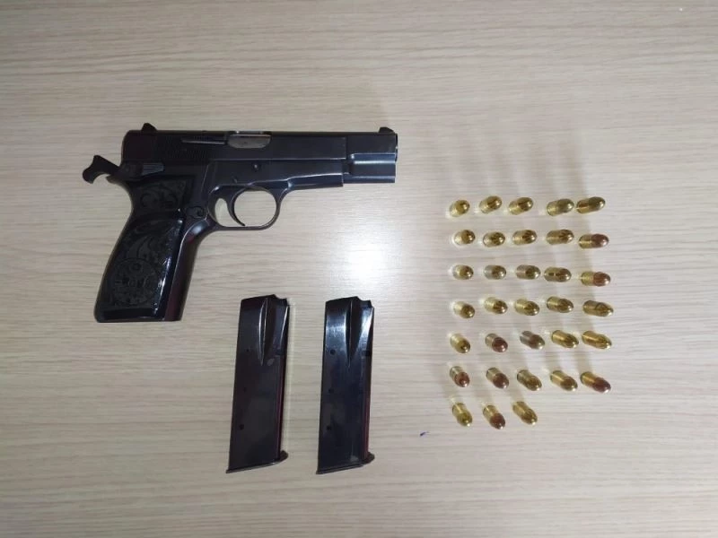 Zanlı şahsın üst aramasında ise ruhsatsız üzerinde marka yazısı silinmiş 9 mm çapında tabanca, 2 adet şarjör ve 33 adet mermi ele geçirildi.