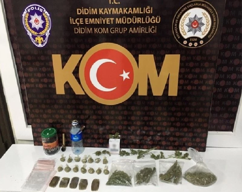 Edinilen bilgiye göre, Aydın İl Emniyet Müdürlüğü, Didim İlçe Emniyet Müdürlüğü Kom Grup Amirliği ekiplerince uyuşturucu madde kullanımı ve ticaretine yönelik çalışma başlatıldı. Çalışmalar kapsamında Hisar Mahallesi’nde yapılan operasyon ile H.Ö. isimli şahıs yakalandı. Şahsın ikametinde yapılan aramada, 80.52 gram kubar esrar maddesi ele geçirilirken, şahsın motosikletinde yapılan aramada ise 4 parça halinde toplam 123.60 gram kubar esrar maddesi, 5 parça halinde toplam 34.43 gram plaka esrar maddesi, 14 parça halinde toplam 54.94 gram toz esrar maddesi, 2 adet aparat ve çok sayıda uyuşturucu paketleme materyali ele geçirildi. Ayrıca arama yapılan motosikletin H.Ö. isimli şahsın üzerine kayıtlı olduğu fakat üzerine takılı bulunan plakanın tescil bilgisinin bulunmaması üzerine şahıs hakkında Resmi Belgede Sahtecilik suçundan ayrıca tahkikat başlatıldı. H.Ö. “Uyuşturucu Madde Ticareti” suçundan gözaltına alınarak sevk edildiği adli mercilerce tutuklanarak cezaevine gönderildi.