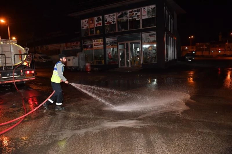 Yakutiye Belediyesi, Ramazan Bayramı sonrası işe başlayacak olan esnafın daha hijyenik bir ortamda iş başı yapması için gece gündüz temizlik çalışmasını sürdürüyor. Su tankerkeri, süpürge araçları ve temizlik personellerinin katıldığı çalışmalarda ilçe merkezindeki cadde ve sokaklar köpüklü su ile yıkandı.