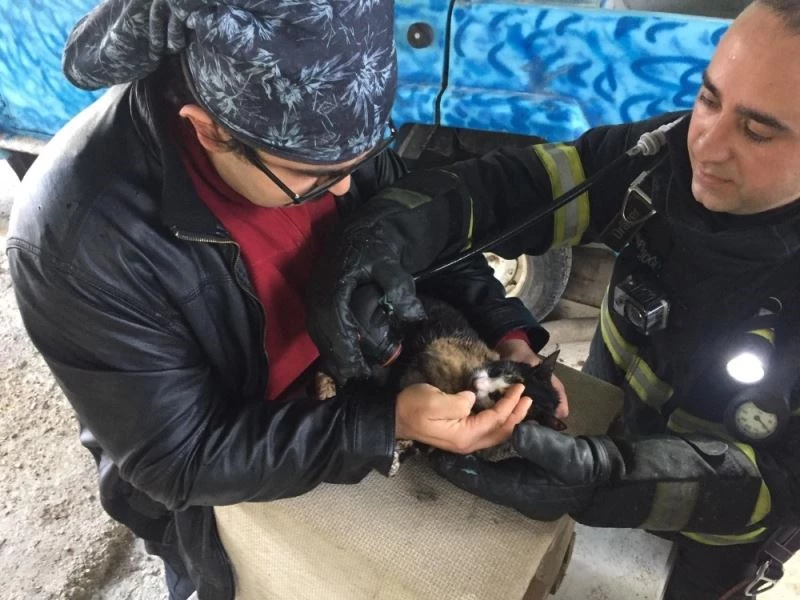 Antalya’da çıkan yangında dumandan zehirlenen ve boğulma tehlikesi yaşayan kedi, itfaiye ekipleri tarafından verilen oksijenle hayata döndürüldü.