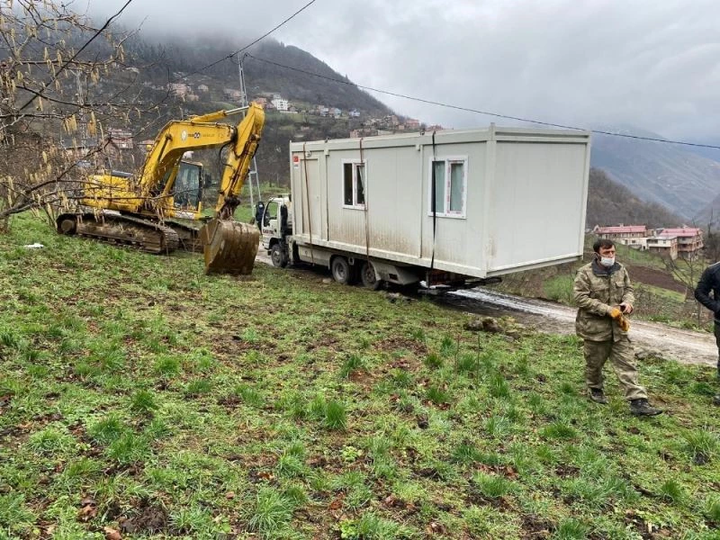 Trabzon’un Araklı ilçesi Taşgeçit mahallesinde geçtiğimiz Çarşamba akşamı çıkan yangın sonucunda 7 ev ve 2 samanlık yanmıştı. Yangında evleri yanan ailelerin kalacağı konteynırlar bugün mahalleye ulaştırıldı.
