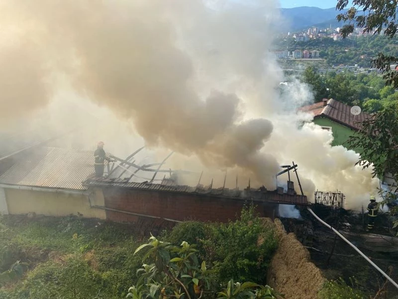 Karabük’te çıkan yangında samanlık ve ardiye küle döndü.